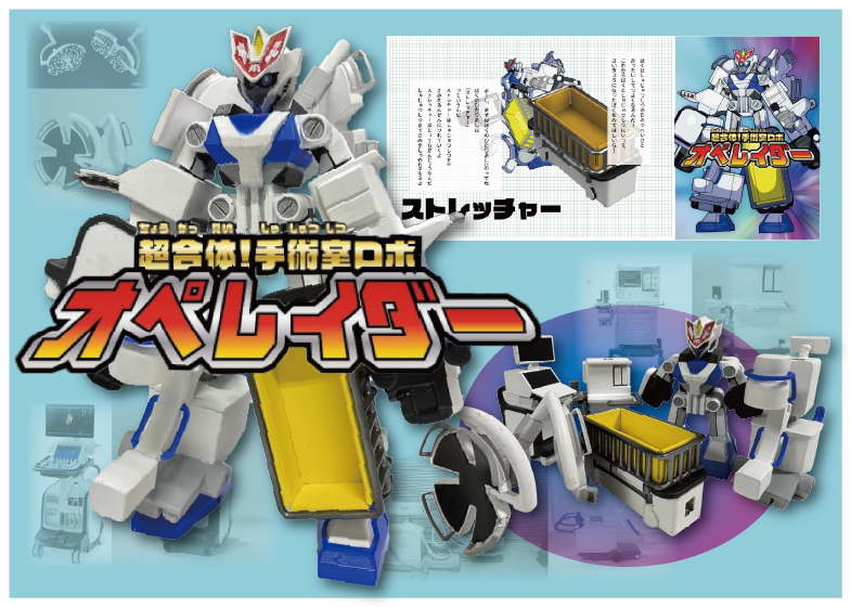 2024年度には九州大学病院 小児外科と連携し、「手術前の子どものためのデザイン」というテーマで取り組みました。デザインと医学の学生たちが、小児患者のプレパレーションのためのサービスデザイン「あつめて!ホスピタン」、手術機器ロボット「オペレイダー」などのアイデアを発案し、プロトタイプを制作しました。