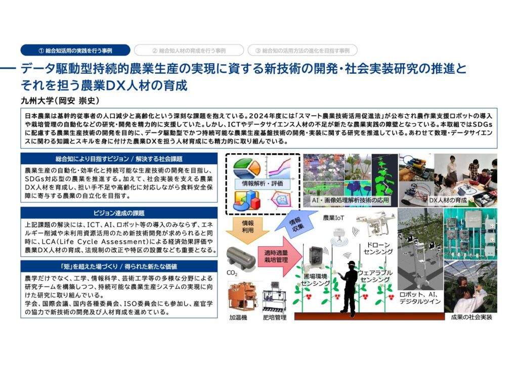 ◆取組タイトル: データ駆動型持続的農業生産の実現に資する新技術の開発・社会実装研究の推進とそれを担う農業DX人材の育成