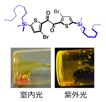 ◆ 室温で高効率なりん光※1を示す有機分子液体※2の開発に成功