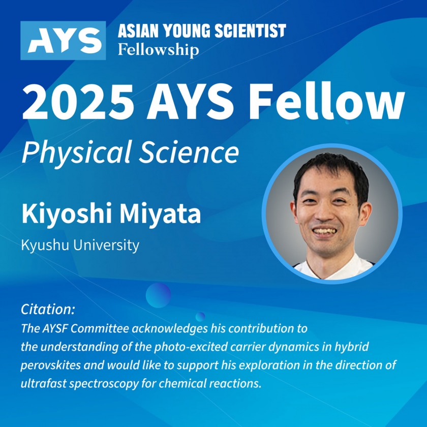 AYSF選考委員会は声明の中で、「宮田氏は、これまでに特にハイブリッドペロブスカイトにおける光励起キャリアダイナミクスの理解に貢献しており、今後の化学反応を対象とした超高速分光の方向性における探究を委員会として支援したいと考えています」と述べています。