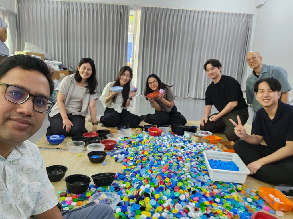 During the morning session, participants visited a recycling facility named as precious plastic company near Bangkok that focuses on the reuse and processing of plastic waste. The visit allowed participants to observe how plastic materials are sorted, processed, and transformed into reusable products. The facility demonstrated practical approaches for reducing plastic waste through recycling and community-based initiatives (Islam_photo4A, 4B. 5A, 5B).