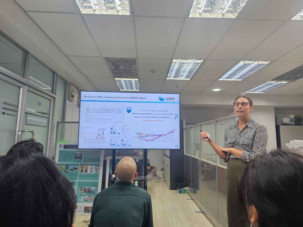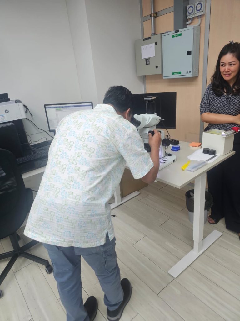 In the morning session, participants attended lectures on microplastics research and sample analysis methods. Researchers explained the major sources of microplastics, their environmental pathways, and their impacts on marine ecosystems. The lecture also introduced analytical methods used to identify and quantify microplastic particles in environmental samples.