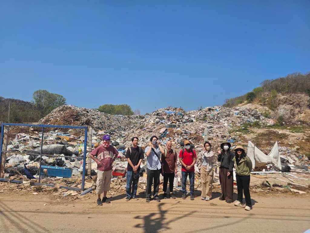 2026年35日、ChonburiSamae San地区のゴミ集積場を見学した。現地では、生ゴミだけでなくプラスチック廃棄物や家具など様々な廃棄物が一か所に集積されており、分別や処理体制の課題を強く感じた。また、廃棄物管理が不十分である場合、陸域から河川や海洋へのプラスチックごみ流出量が大きくなる可能性を実感し、プラスチック汚染の背景には陸域の廃棄物管理システムが大きく関わっていることを理解した(Takai_photo4)。