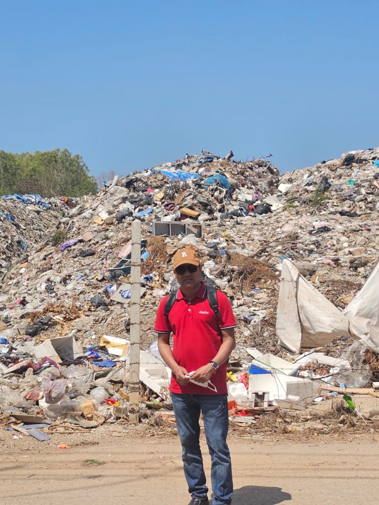 In the afternoon, participants traveled to the Samae San area, where plastic waste is accumulated in open dumping locations. The field visit provided an opportunity to observe the scale and environmental impact of unmanaged plastic waste in coastal environments. By directly examining the types and sources of plastic debris found in the area, participants gained a deeper understanding of the challenges faced by coastal communities in managing plastic pollution (Islam_photo9, 10A, 10B).