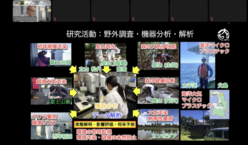 「海洋」プラスチック研究会から、「環境」プラスチック研究会と名称を変更後、初の開催となった本研究会では、早稲田大学の大河内 博 教授(理工学術院 創造理工学部)より、「マイクロプラスチック大気汚染の実態:健康と気候への新たなリスク」と題して、講演を頂きました。